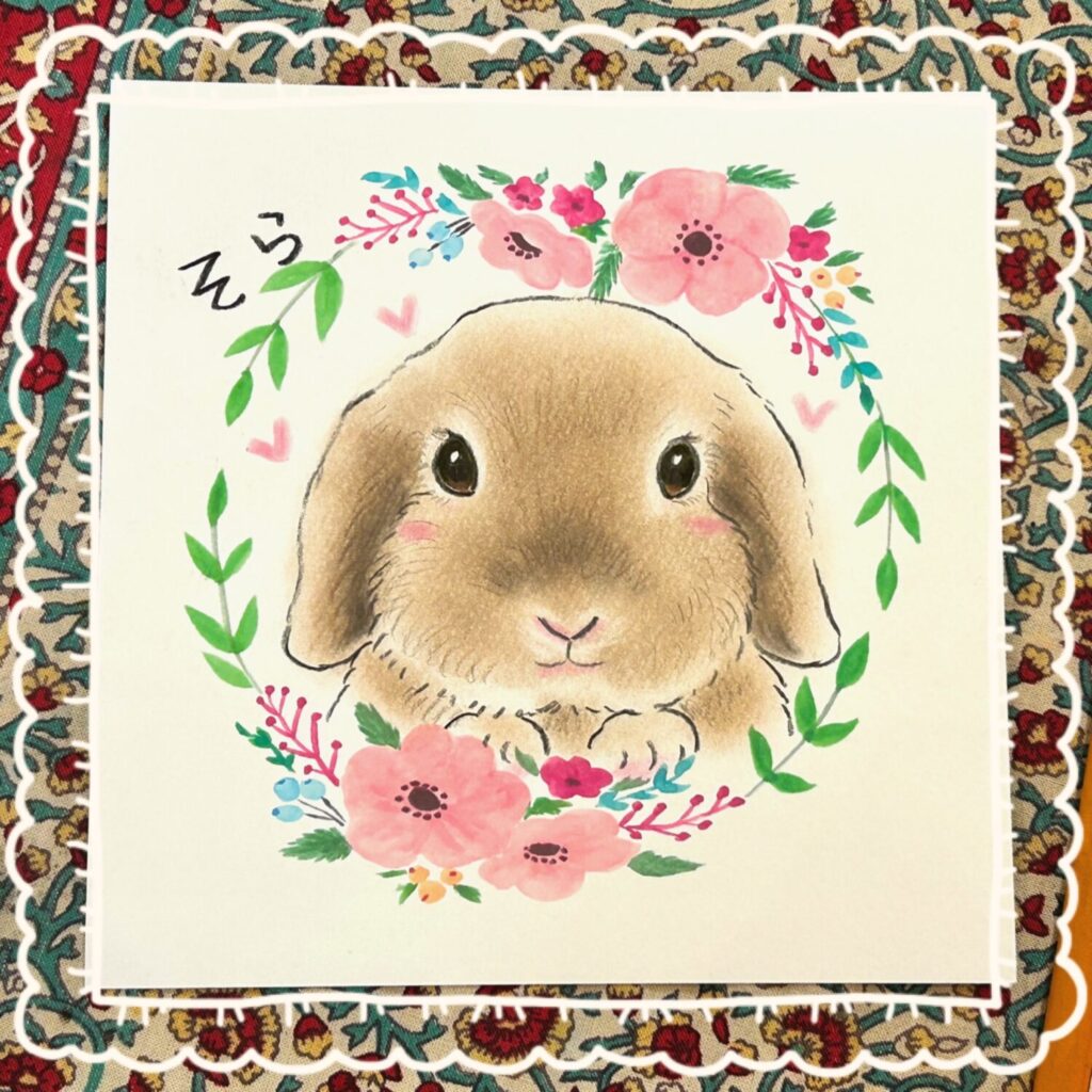 柔らかいタッチのパステルは、ふわふわのうさぎにぴったりの画材です♪