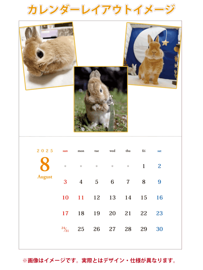 - カレンダー掲載の際は、うさぎさんのお名前は掲載致しません。