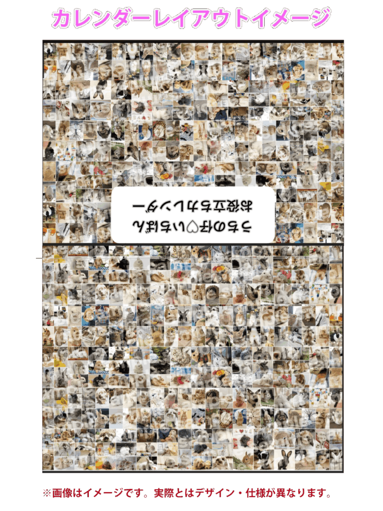 →被写体(うさぎさん)に対して余白のない写真は、フレームに入れた際、切れる場合があります。ご了承下さい。 - カレンダー・会場の写真を掲載する上でのレイアウトについて